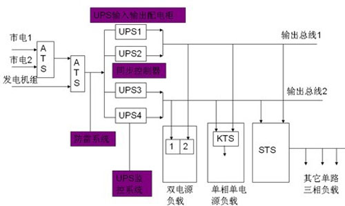 鑒于現在通信網絡機房內的絕大多數IT設備,比如服務器、路由器、交換機、光端機、網關、磁盤陣列機和通信設備等,所允許的瞬間供電中斷時間僅為0.01-0.02秒左右。這就意味著: 對于關鍵性的通信負載系統而言,在運行中如果出現0.02秒以上“瞬間供電中斷”的故障時,就會造成“網絡癱瘓”事故發生。一旦網絡癱瘓后, 要想讓整個網絡重新恢復正常工作往往需耗時幾十分鐘--幾小時。顯而易見,由此會給用戶帶來巨大的經濟損失。基于上述原因,我們必須考慮消除可能出現在UPS輸出供電系統中的”單點瓶頸”故障隱患,確保對這些關鍵性IT負載設備供電的連續性。