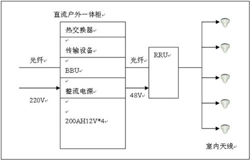 直流拉遠:RRU距離機房在100米以內,采用室外型一體化通信電源系統